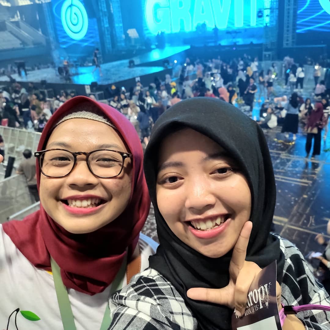 Barang bawaan itu hal paling utama yang harus diperhatikan. Waktu konser pertama kali, aku bawa tas backpack dengan ukuran sedang. Banyak barang yang aku masukin, seperti jaket, payung, notebook, alat tulis, lightband, tumbler, dompet, alat makeup, mukena, sampai kipas pun aku bawa. Hasilnya, tas aku berat banget dan cukup nggak nyaman. Akhirnya, aku nitipin barang-barang itu di dalam bus.