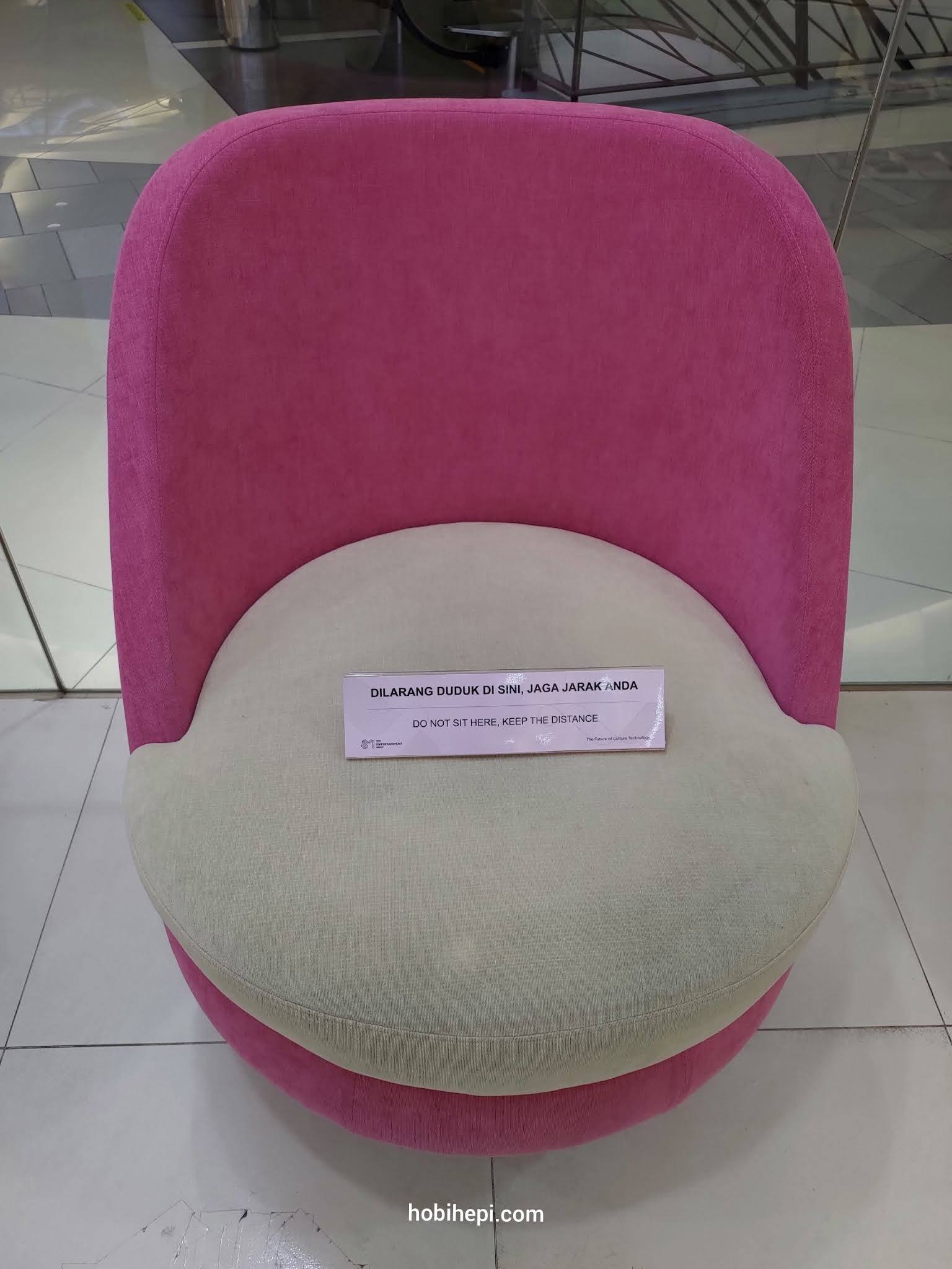 2. Dilarang menduduki area sofa. Huhu, ternyata sofa yang terlihat itu hanya pajangan semata dan memang lagi ada social distancing.